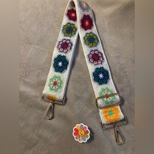 Boho Embroidery Multicolor Crochet Flower Adjustable Purse Strap Only
