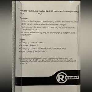 Radio Shack Charger for Ni-MH AA and AAA Rechargeable Batteries