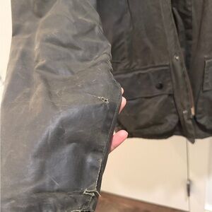 Classic Barbour Bedale Waxed field chore jacket. Dark green waxed finish. Corduroy collar adds a touch of style. Definitely has some love but I think that gives it character - can fit a women’s medium/ large or men’s small/ medium! Has been waxed multiple times.
