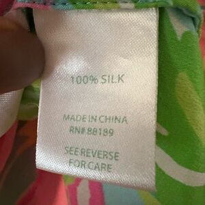 Lilly Pulitzer 100% silk Vibrant Pink and Green Blouse