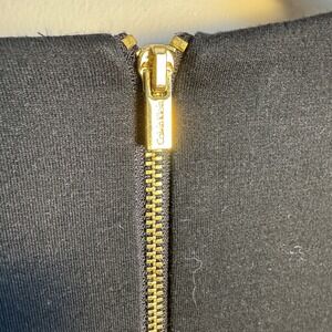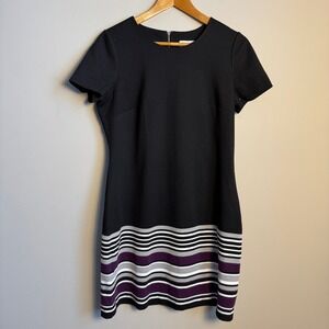 Calvin Klein Black Sheath Dress with Striped Hem Size 12 Jersey Casual Rear Zip