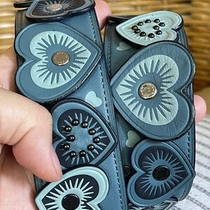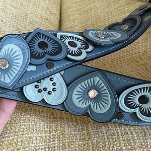 Coach Blue Leather heart appliques bagstrap with Gunmetal Hardware