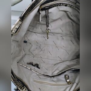 This is a beautiful Brahmin tote bag with some wear such as pen marks on the inside of the bag. The bag is gorgeous on the outside!! The pen marks on the inside of the bag are shown in the pictures!! Please look at all the pictures as they are part of the description!!