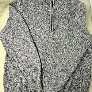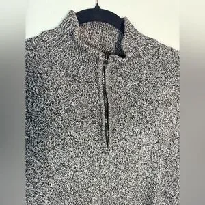 Sophisticated charcoal zip-up sweater. Features a sleek design. Ideal for layering.