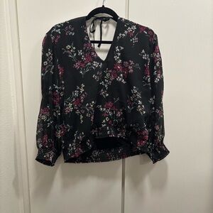 Abercrombie & Fitch Women’s Medium Black Floral Blouse V-neck Top