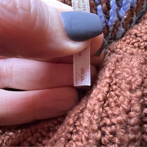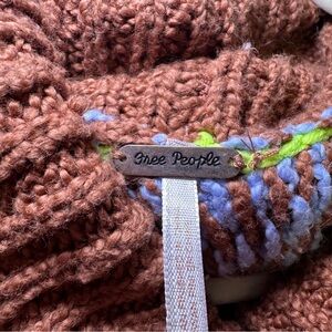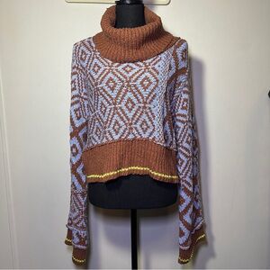Free People Jupiter Blue Brown cowl neck cropped pullover geometric knit sweater size Small