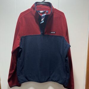 Lands End Mens Size Large Fleece Snap Neck Pullover Sweatshirt Red Blue NEW