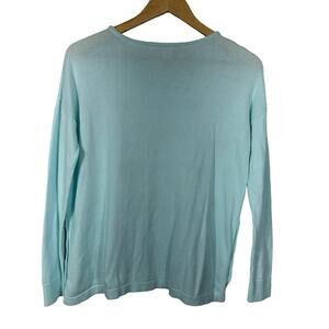 Soft blue, lightweight scoop neck sweater with all over sequin pineapple detail