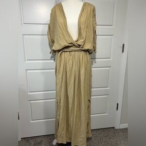 Spiritum Tulum Boho Maxi Dress Deep V Neck Sleeveless Flowy Beach Cover Up Dress