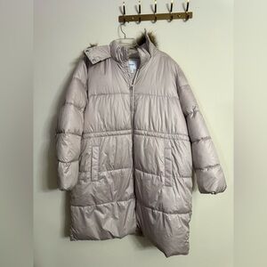 Old Navy Hooded Frost-Free Long-Line Puffer Jacket Rose Beige Pink 2X Plus NWT