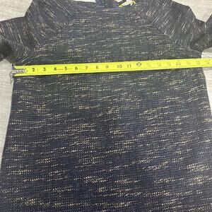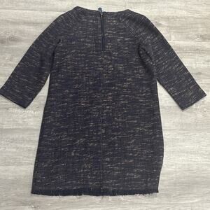 Joules Tweed Shift Dress Womens 6 Navy Brown 3/4 Sleeve Frayed Hem Back Zip