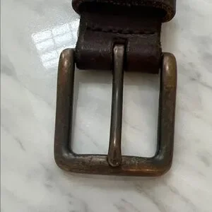 Stylish brown leather belt featuring brass accents for a classic look. Perfect for adding a touch of elegance to any outfit.