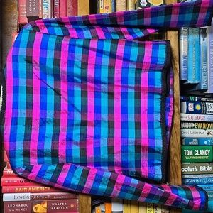 This gorgeous vintage jewel toned 100% silk jacket from Maggy London is so beautiful! Black, pink, turquoise and royal blue plaid lady jacket has braided black trim and front closure. Fully lined and in excellent vintage condition. This garment looks great styled with jeans as a top or jacket or you can easily level it up for a special occasion. Shantung silk has natural occurring nubs, clubs and imperfections that ate naturally occurring.