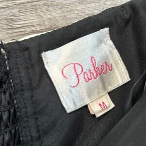 Parker Black Ivory Strapless Silk Dress with Textured Hem Cocktail