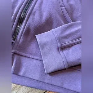 Lululemon Loungeful cropped hoodie sweatshirt, women’s size 4. Light purple/lavender. Good condition, a few very small faint spots on sleeves. Inner care tag is also missing. No rips, holes or odors. Please see photos for item details/dimensions. Some photos may appear different in color due to lighting. Ships from smoke-free home.