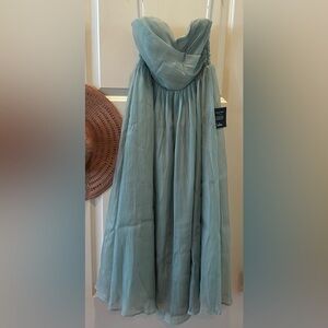 LULUS Fairytale Design Sage Green Organza Strapless A-Line Midi Dress XS NWT