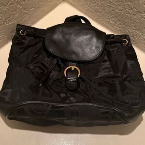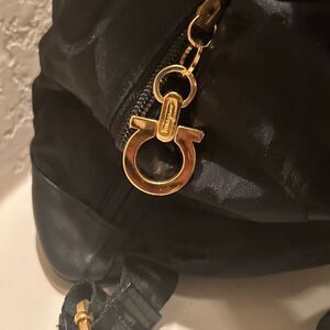 Vintage Salvatore Ferragamo Mini Backpack Black Nylon Leather Gancini Accents