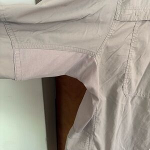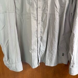 REI Co-Op men's tan brown button down shirt with a vented back & mesh under the arms for airflow. Size XXL. It features a button up front closure, a long sleeve with buttons at the cuffs and front pockets. In great preowned condition.