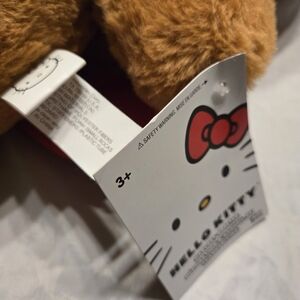 Charming Hello Kitty plush in a cute red and brown ensemble. Ideal for cuddles and playtime.