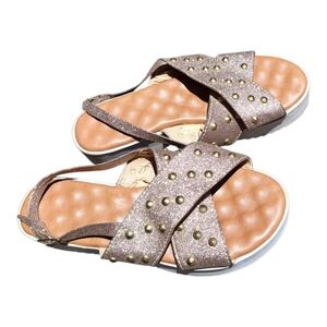 No brand or size information found on the sandals. Size 6 based on length measurement of 9 inches.