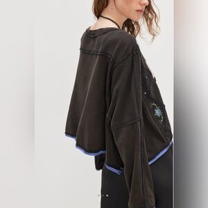 NWT Free People L We the Free Allie Tee in Black Combo Embroidered New $98 Top