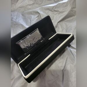 Sleek black Givenchy sunglasses case. Elegant and stylish design. Givenchy Sunglasses Case and Cloth. The case and cloth have not been used and in great condition. Please note minor dent on case.