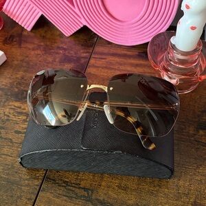 Sophisticated Prada sunglasses with a gold frame. Brown lenses offer a classic look.