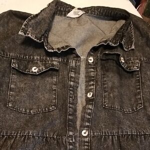 This trendy black denim shirt is perfect. It features a stylish design with button details and a comfortable fit. Ideal for casual outings and adding a cool touch to any outfit.