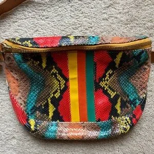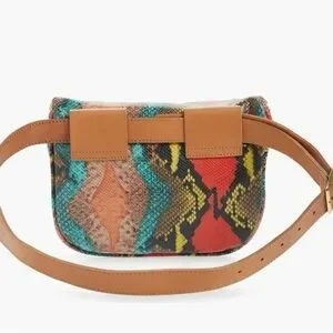 From the bold center stripes to the color-saturated, snake-embossed leather, this versatile bag is a statement look with plenty of street-savvy appeal.