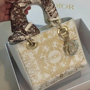 Dior Cream&Gold Mini Bag. Charm, Twilly, Crossbody Strap & Box Included.