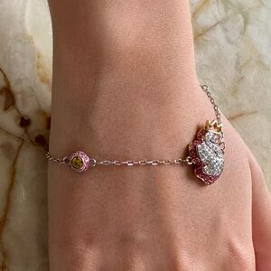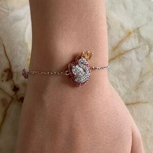 swarovski bracelet features a stunning swan design adorned with pink and gold accents. Perfect for adding a touch of sophistication to any outfit.