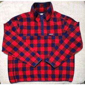 Lands' End Men's XXL 2XL Blue and Red Buffalo Plaid Fleece Quarter Button