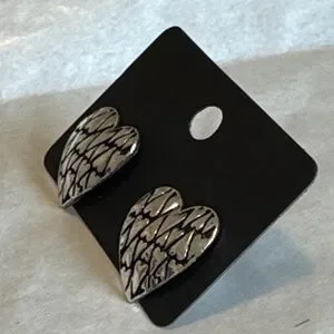 Stylish silver heart-shaped earrings. Perfect for any occasion.