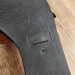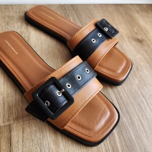 Anthropologie Cedar Brown & Black Buckle Slide Sandals Women's Size 39