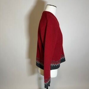 Woolrich 100% Wool Fair Isle Knit Sweater Womens Small Red Gray Winter Festive