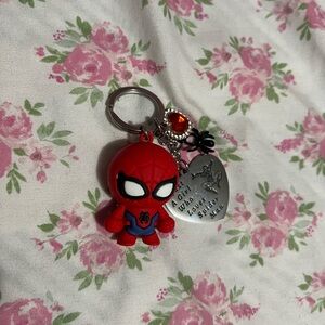 Cute red Spider-Man keychain with additional charms