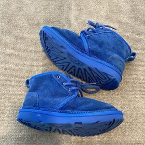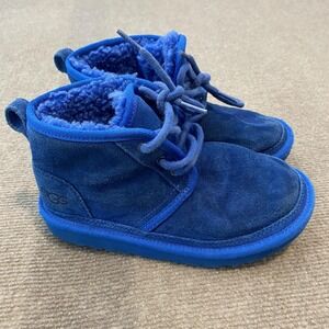 UGG Chukka Boots Kids Size 1 Blue Suede Fleece Lined Winter Ankle Lace Up