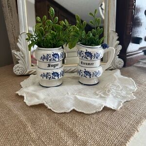 Charming Blue and White Floral Sugar and Creamer Set