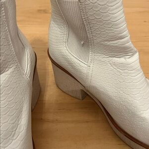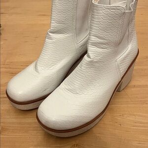 Elegant white ankle boots with a textured finish. Stylish and versatile for any outfit.