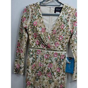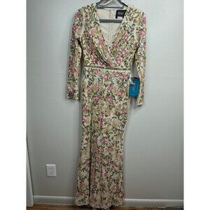 Mac Duggal 5503 Long Sleeves Embellished Floral Sequins Evening Gown Maxi Sz. 4