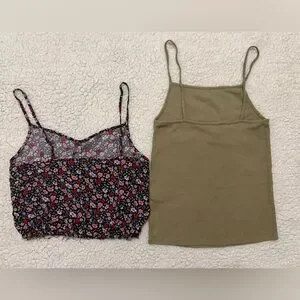 This set includes a stylish floral top and a chic olive green top. Perfect for versatile styling, these tops offer comfort and elegance. Ideal for casual outings or layering.