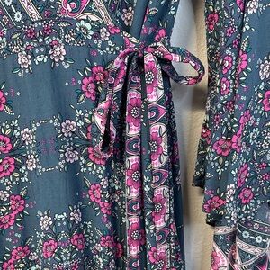 Coastal Traders Bohemian Bell Sleeve Maxi Wrap Dress Size L/XL