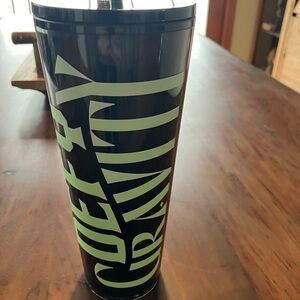 STARBUCKS GLOW IN THE DARK black tumbler with a convenient straw. Ideal for daily use.NWT