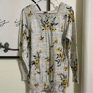 Torrid yellow floral sweater on light heathered grey. Lightweight and perfect for a breezy day. Excellent used condition.