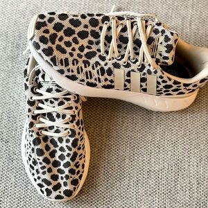 Trendy Adidas sneakers with a bold leopard print. Black and white design. Ideal for everyday wear. Worn once inside only!