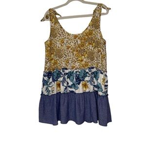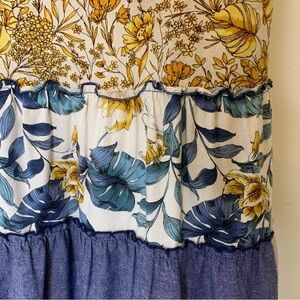 Hummingbird rayon/linen yellow & blue floral tiered boho tunic/dress. Size M