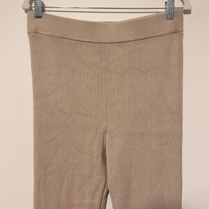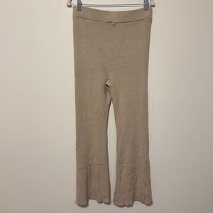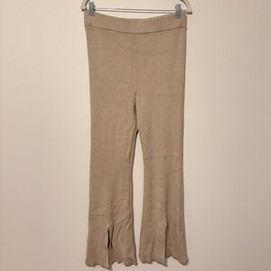 Abercrombie & Fitch Beige Ribbed Knit Flare Wide Leg Slit Pants Size Large