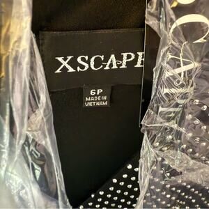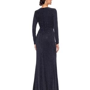 XSCAPE Women's Rhinestone-Embellished Ruched Gown Black Long Sleeve Petite