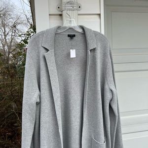 NWT Talbots Beautiful Thick Gray Open Front Wool Blend Cardigan Pockets