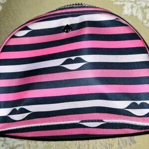 Kate Spade Striped Lip Print Nylon Dome Cosmetic Case. Like New